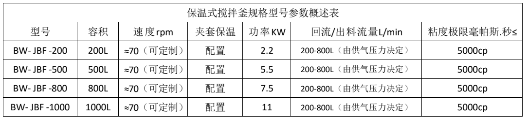 JBF-200/ JBF -500/ JBF 800/ JBF 1000 保温式搅拌釜